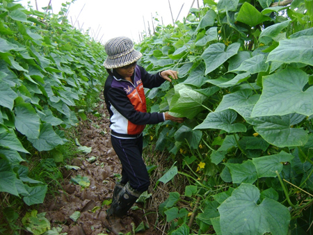Chăm sóc dưa chuột bao tử tại xã Trực Nội (Trực Ninh, Nam Định).